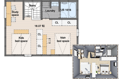 2階は個人の暮らし方や人数に合わせて家具等で間仕切る、時代のトレンドを取り入れた間取りを採用。