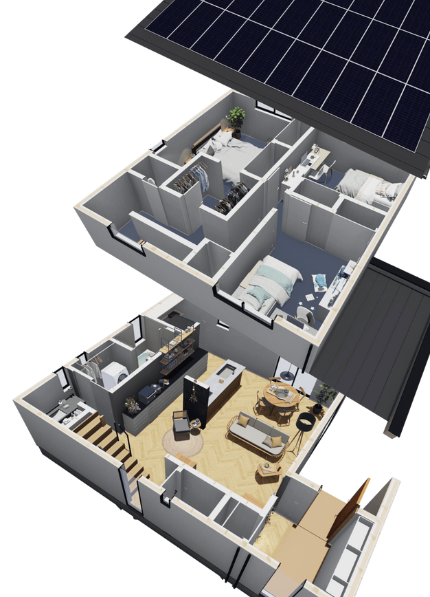 オープンタイプとクローズタイプの2つの収納で、見せたいもの・隠したいもの、季節によって収納を使い分けできます。